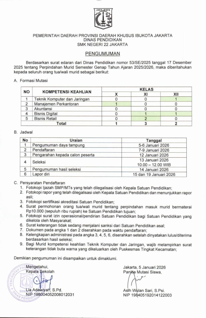 WhatsApp Image 2026-01-05 at 06.37.48 Related Articles PENERIMAAN SISWA MUTASI SEMESTER GENAP TAHUN PELAJARAN 2025/2026 2 days ago Pembatasan Penggunaan Media Telekomunikasi Handphone 19/08/2025 PENGUMUMAN HASIL TES MUTASI PESERTA DIDIK SEMESTER GANJIL TAHUN PELAJARAN 2025/2026 17/07/2025